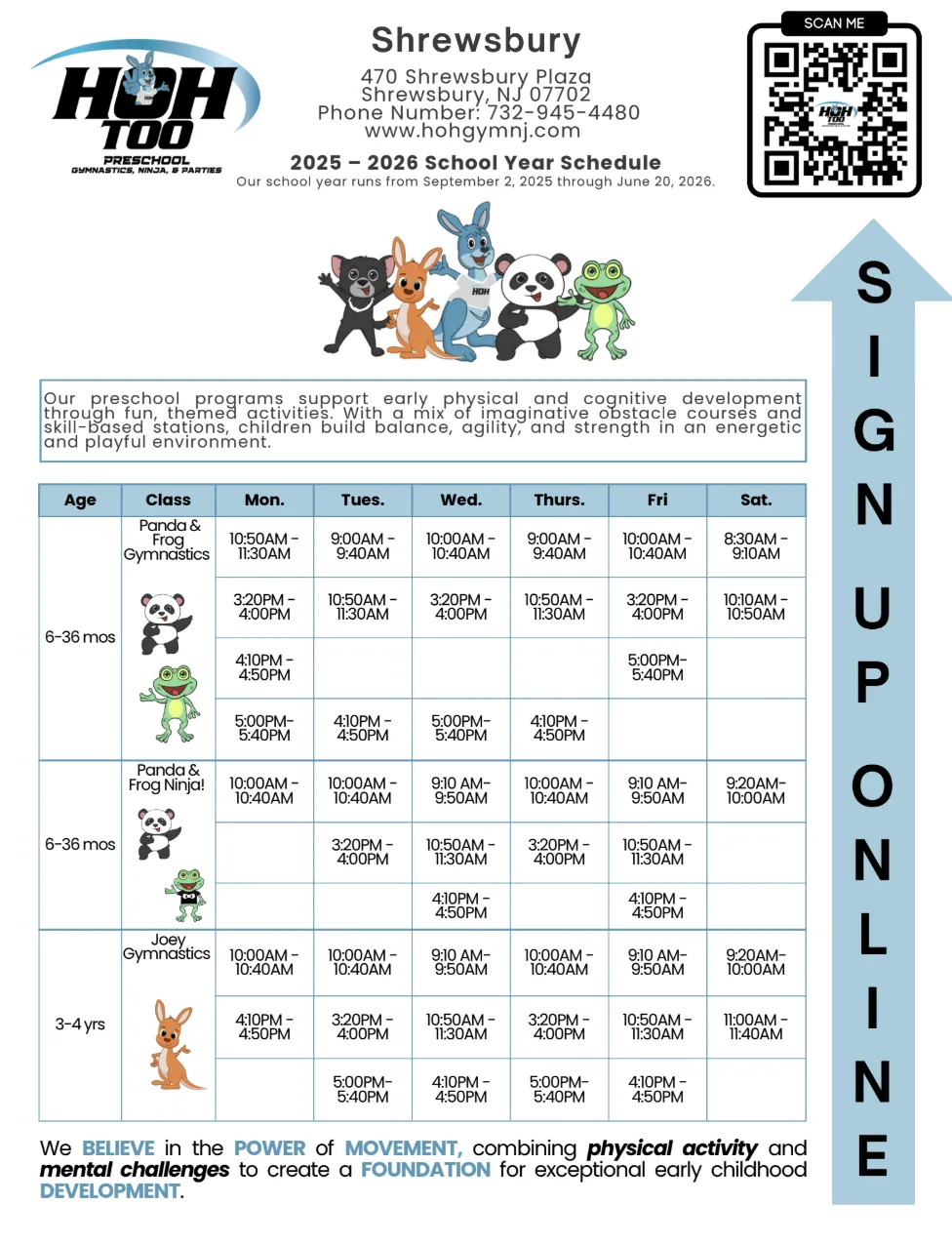 We’re conveniently located in the Shrewsbury Plaza shopping center, less than a mile from The Grove. That means families from Shrewsbury, Red Bank, Little Silver, Fair Haven, and surrounding towns can easily join us for classes, playdates, or parties.