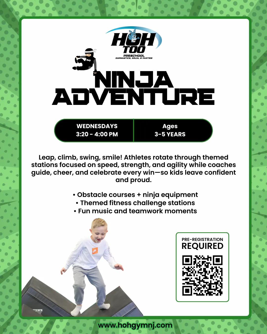 Lil Ninja (3–5 years): Early skill development through fun obstacle play.